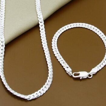 Women’s 925 Sterling Silver Chain Necklace and Bracelet Set